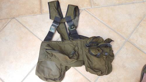 Here on auction we have a used (was issued to someone and actually used) South Africa Special Forces Niemoller battle-jacket olive green SF (aka Recce's) type webbing - this is the older type, also called first issue with the distinctive Swedish Fixlock clips used for (silent) pouch closures.