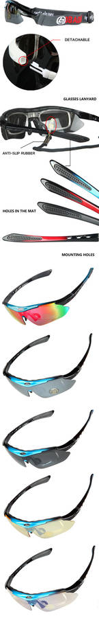 Features: Holes in the mat prevent them fall off when you riding Temple with 3 hole make you feel better when you sweating Comfortable to wear, conveinet to take by your side, good ability of anti-impact, very durable. They are consist of high intensity light lens, with Ergonomics design style, 5 lens with 100% anti-ultravoilet functions. This pair of glasses is designed professional to protect your eyes when you are doing outdoor sports, as hiking,hunting, skiing , cycling, climbing mountains.