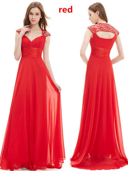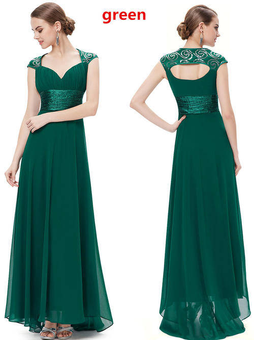 V-neck Sequins Chiffon Ruffles Empire Line Evening Dress