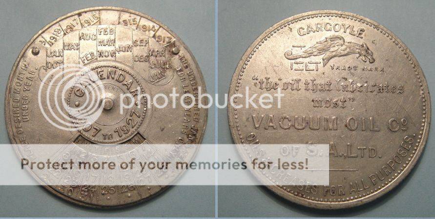 Vacuum Oil of South Africa Calendar Token (1907-1927)