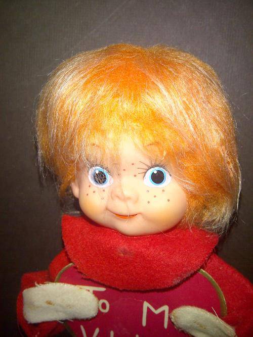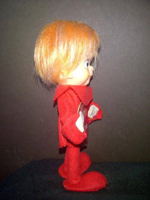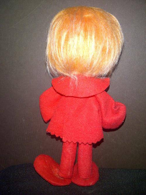 I am a vintage pixie with light orange hair and is about 16 cm high. My body is made of wire and my clothes are made of felt. I am in 'vintage' condition - there are some signs of age on my clothes but I am actually still in a good condition considering my age. If you are a collector I am sure you will love me! I was made in Japan for Napco, Ohio. The card I am holding is removable.