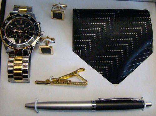 Valentines gift-5 PIECE BLACK GIFT SET CONSISTING OF WATCH CUFFLINKS, TIE PIN, TIE AND MATCHING PEN