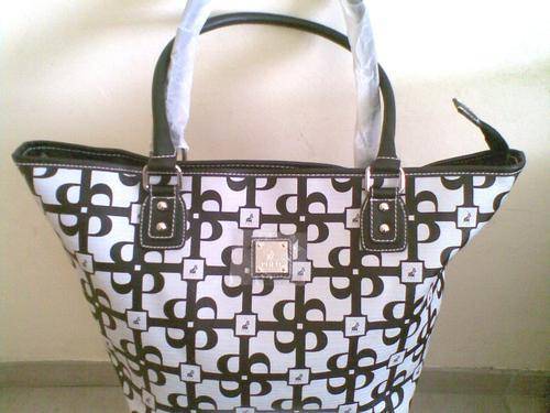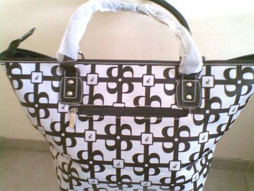 **PERFECT VALENTINES GIFT** BLK/WHITE POLO HANDBAG, ORIGINAL WITH CERTIFICATE AND DUST BAG-CENTRAL ZIP CLOSURE AS WELL AS BACK ZIP, FULLY LINED INNER,INSIDE SEPERATE MIDDLE ZIP, HEIGHT 29CM,LENGHT 40CM...