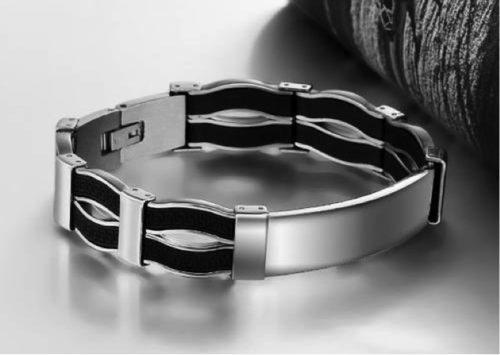 Valentines SALE! Genuine Stainless Steel Mens Bracelet With Black Silicon Detail
