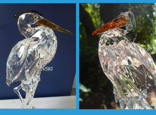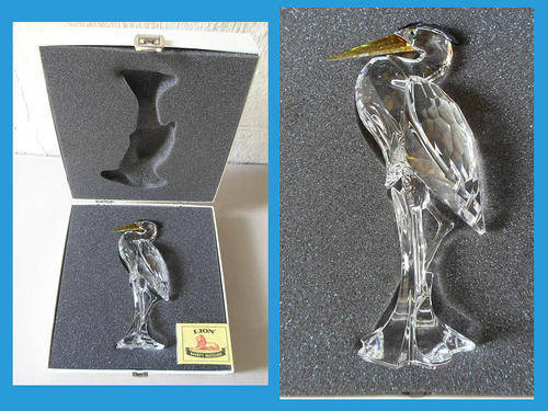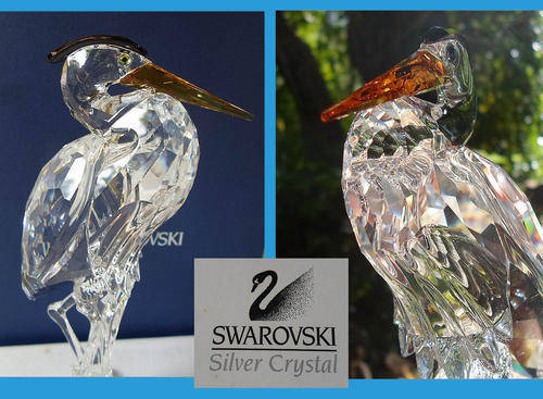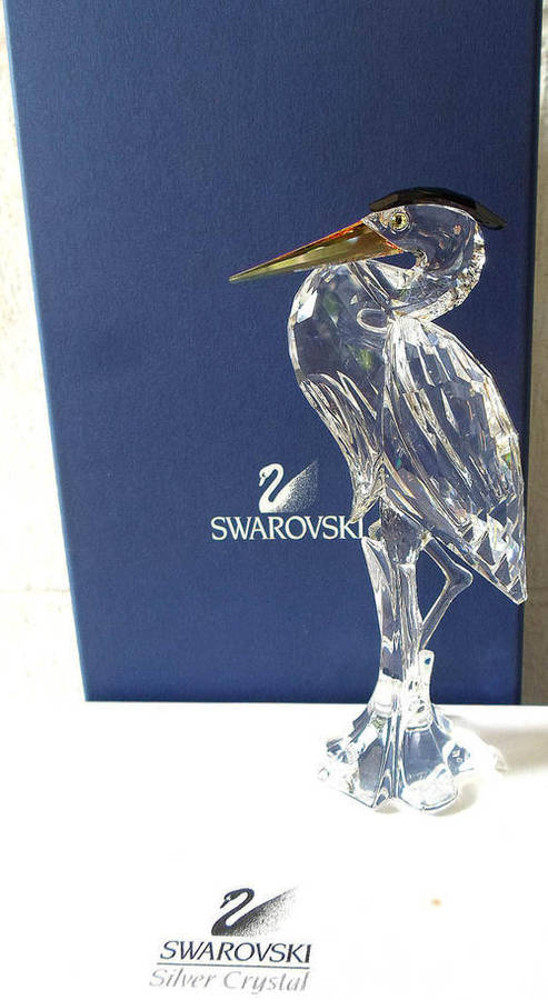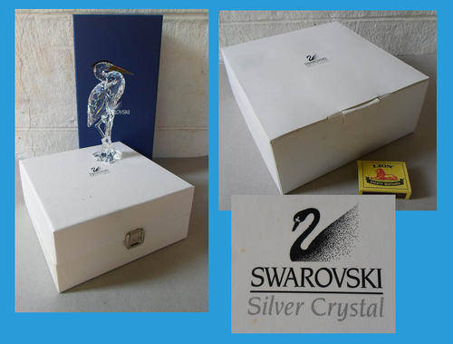 Another Breath taking piece. Swarovski Heron from the Feathered friends Collection, introduced 1998, now retired . Striking Bird with silver crystal beak and dark head crown. Still in original box but lacking certificate. As new condition, no chips, cracks and no repairs. Item number 221627. Replacement value R6000+ Bargain low special price, don't miss this one. (see another Swarovski piece listed) Seller mentioned this was purchased late 1990s for over R7000?