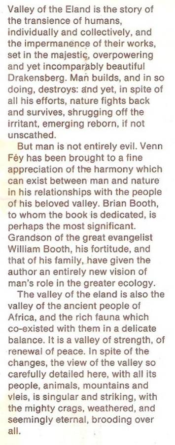 Valley Of The Eland - By Venn Fey - With A Foreword By Ian Player