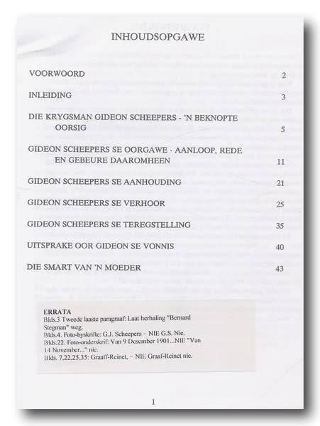 Van die oewer van die Dwyka na Graaff-Reinet se sand. Kmdt Gideon Scheepers - Sy Lewe, Gevangeneming & Teregstelling deur Retief Koch (1998). A5, "Staple"-boekie, 52 bls. Boekie in algehele goeie toestand.