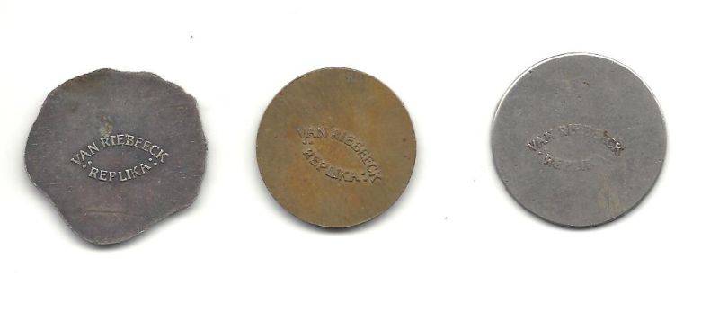 The full set comprising twelve replica coins of coins used in South Africa between 1652 and 1830. The reverse of each is marked "Van Riebeeck Replika" These were packed in tins of van Riebeeck instant coffee. Issued in conjunction with the 1952 Jan van Riebeeck festival in Cape Town which opened on 13 March 1952 and was officially proclaimed as Africa's version of the Crystal Palace Empire Exhibition that was held in London in 1851. This was celebrating the Jan van Riebeeck Tercentenary on the 6th April 1952.