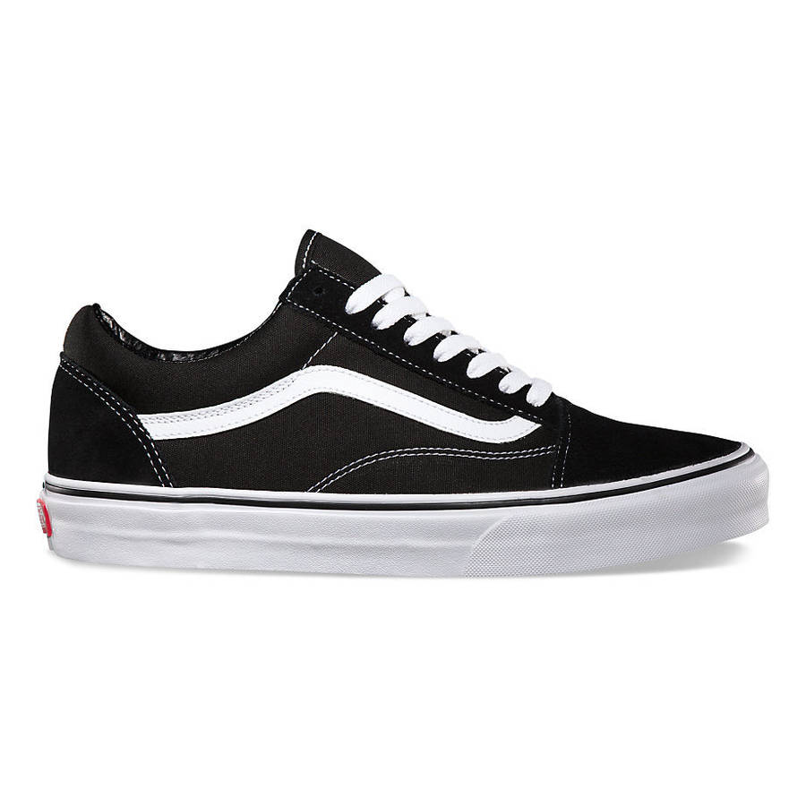 Vans The Old Skool, Vans classic skate shoe and the first to bare the iconic side stripe, has a low-top lace-up silhouette with a durable suede and canvas upper with padded tongue and lining and Vans signature Waffle Outsole.