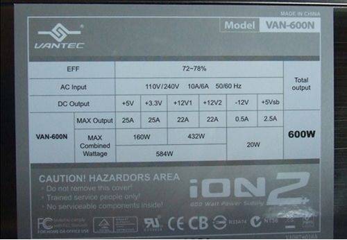 600Watt power supply, still running like the first day I installed it.