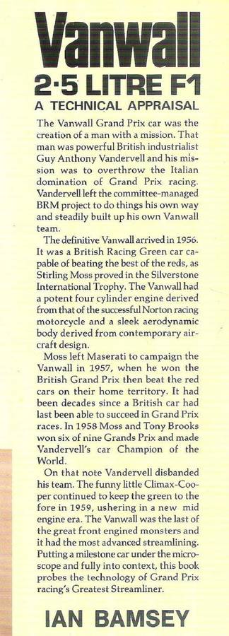 Vanwall 2.5Litre F1 -A Technical Appraisal, The Greatest Streamliner By: Ian Bamsey