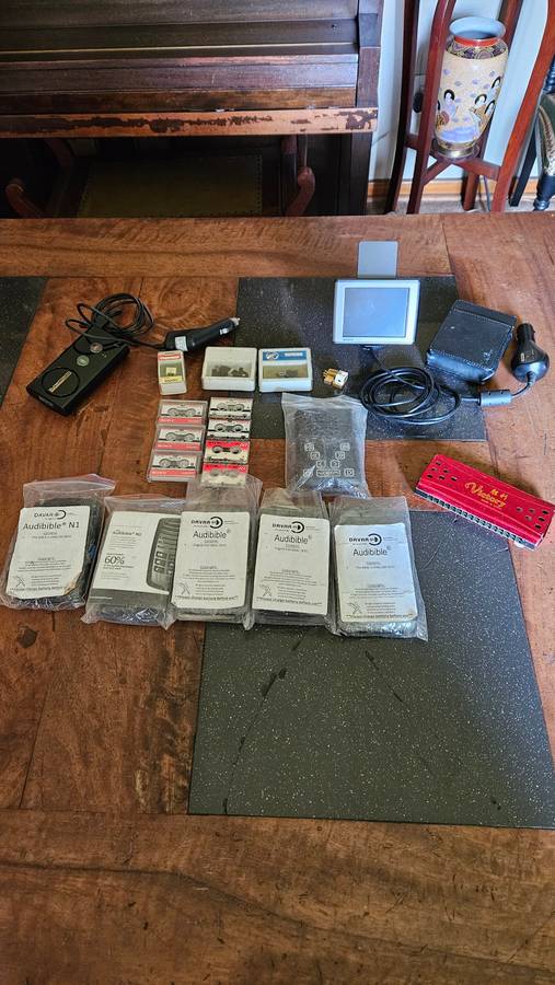 The Garmin works. The Bluetooth works. The tapes are all in a good usable condition. The mouth organ works but has two dents on it.