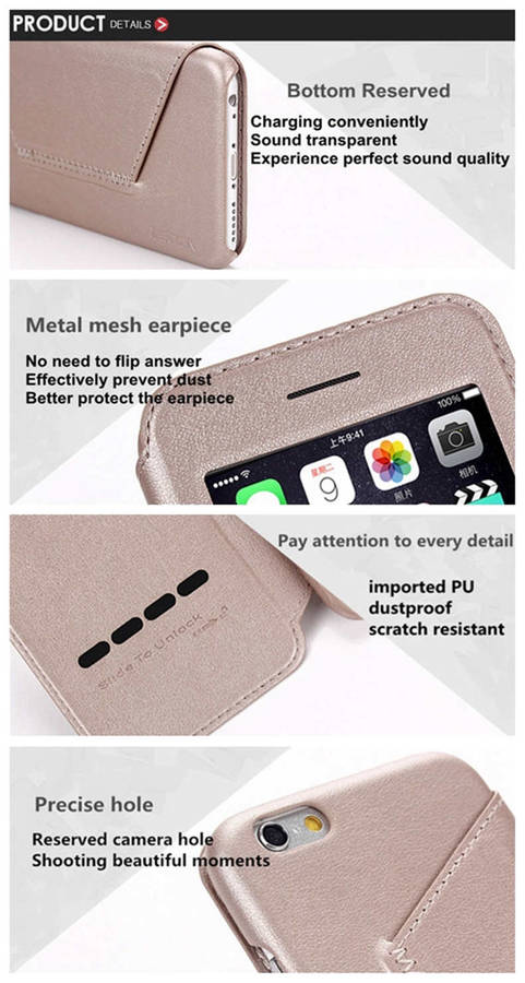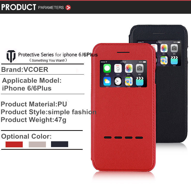 VCOER Flip Phone Protection Case Slim View Window Protective Shell For iPhone 6 6S 6Plus 6S Plus