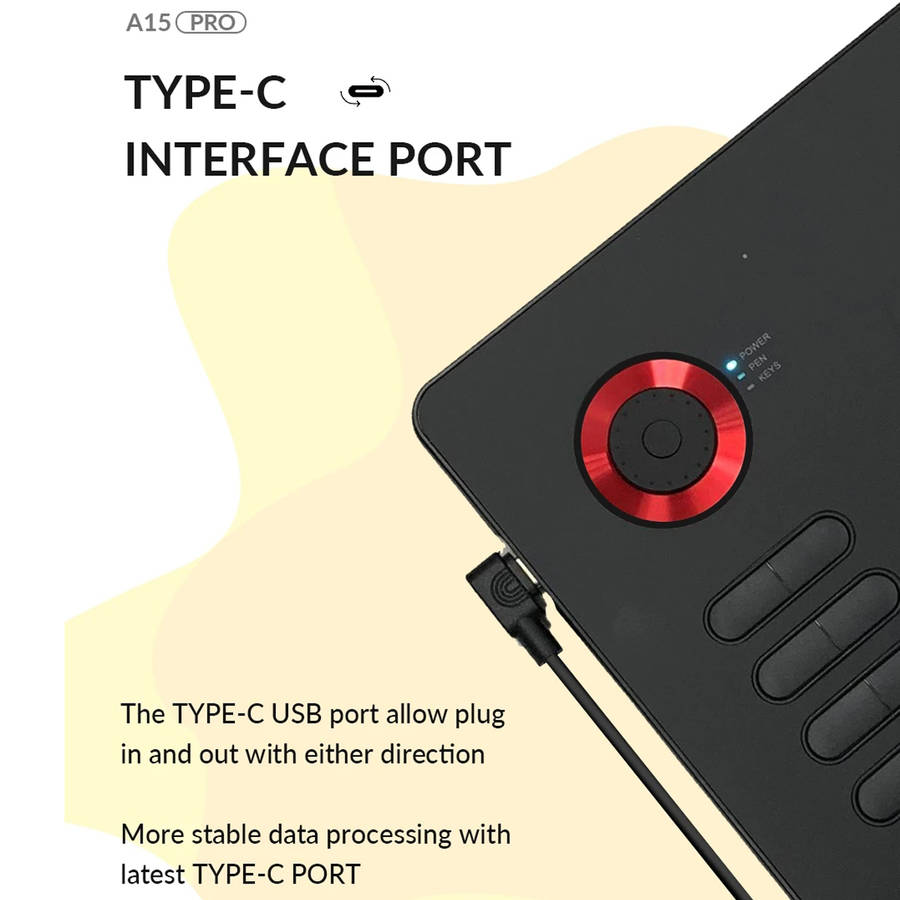 4. Type-C input design: Can easily plug in and out with either direction which is more convenient and stable. The A15Pro drawing tablet come with 28 spare nibs and 1 artist glove.