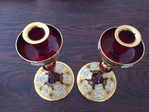 LOVELY PAIR OF VENETIAN GLASS CANDLES STANDS