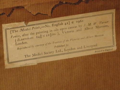 An Old Framed Print of VENICE, "after the painting in oils upon canvas by J.M.W. Turner". Frame individually designed for this print. About 64 x 44 cm full size.