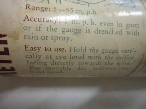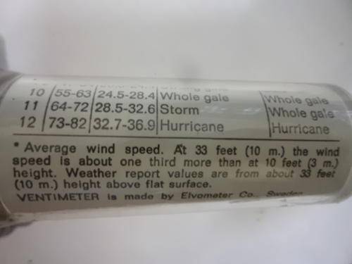 Ventimeter - wind gauge. size: height 20cm. width 5cm.