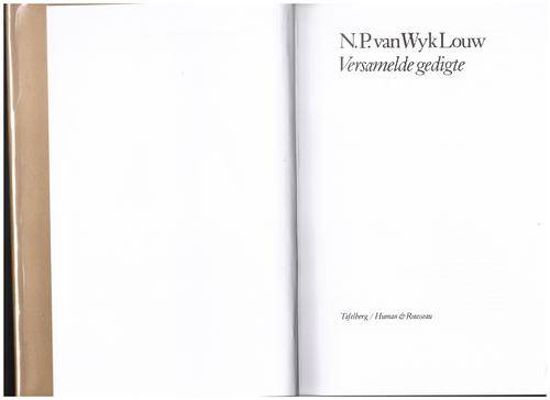 Versamelde gedigte: NP van Wyk Louw is ‘n heruitgawe van die oorspronklike publikasie in 1981, ter viering van dié grootse digter se geboorte 75 jaar tevore. Die versamelbundel sluit in al sy vorige digbundels, naamlik Alleenspraak, Die halwe kring, Gestaltes en diere, Nuwe verse en Tristia, asook vyf nagelate verse.