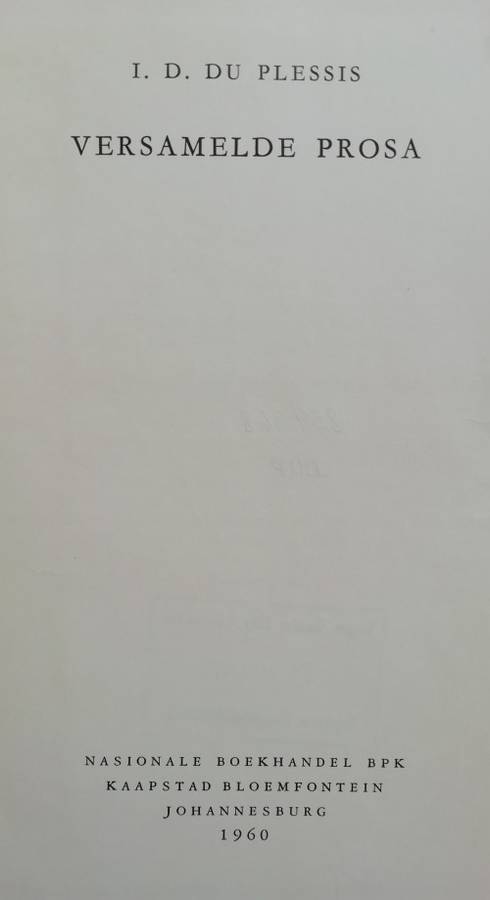 Versamelde Prosa deur I.D. du Plessis