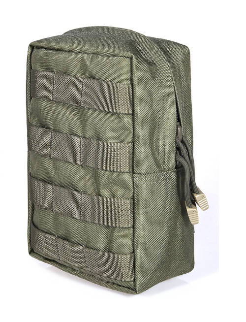 This pouch can be attached to any Molle - webbed product ( vest,backpack,jump bag,utility bag etc. )it's then kept securely in place with two high quality UTX brass snap buttons
