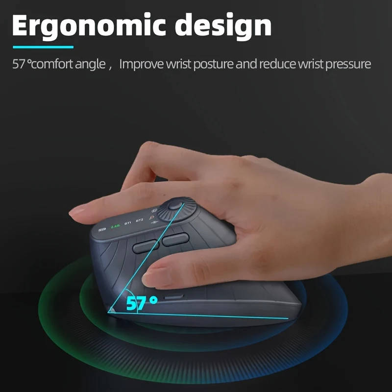 Ergonomic Mouse Wireless Mouse with Function Adjustment Knob Vertical Gaming Mouse 2.4G Dual Mode Rechargeable Mouse for PC Laptop Tablet