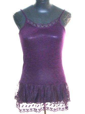 Adorable lace hem slip dress with adjustable speghetti straps.