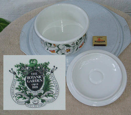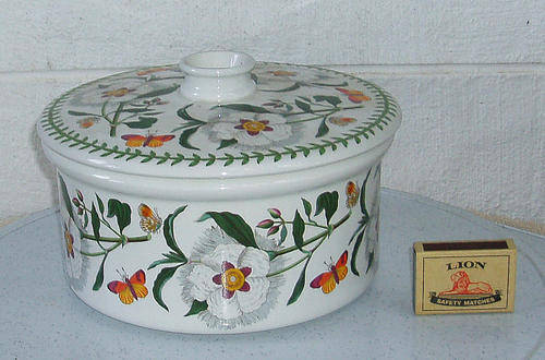 DESIRABLE AND VERY COLLECTABLE...............PORTMEIRION PORCELAIN CASEROLE OR VEGETABLE DISH AND LID WITH ATTRACTIVE BOTANIC GARDEN SERIES PATTERN. PERFECT CONDITION, NO CHIPS, CRACKS OR REPAIRS. MEASURES APPROXIMATELY 21 X 12CM WITH LID IN PLACE.