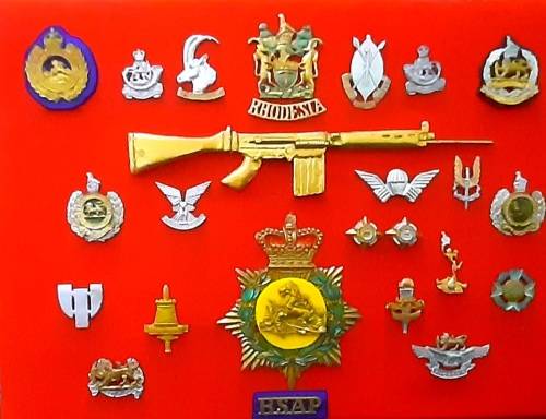 A beautiful 4 piece set ( 30x 42cm) collection of Military, Police and related belt buckle Insignia, mounted on a stiff backing board, covered in red felt.. Please note - sold voetstoots. The delicate resin and liquid glass replicas are all identical to originals, both in detail and size, but " not behind glass or in frames". I have tried to create each badge as identical as the original as possible, but a very small number are not 100% to my liking.. A fantastic collection never-the-less with over 120 different units mounted, an ideal start or display to the refined collector. R275 PER SHEET OR as a starting bid for all 4 .r1000.... but will consider offers on split units.. not originals