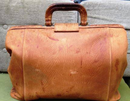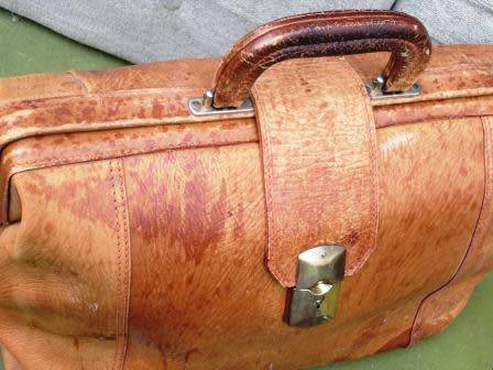 Very Large Old Vintage Leather Gladstone Travel Bag