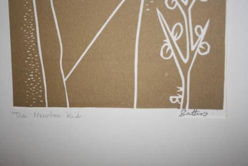 Walter Battiss (SA1906-1982), Linocut, "The Newborn Kid" signed in pencil & inscribed with the title (27.5 x 15cm) Authentic. Auction may close early depending on bidding.