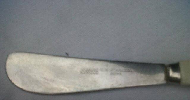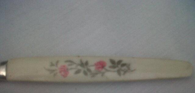 old butter knife with roses on front markings at back is lucky wood 18cr stainless steel japan