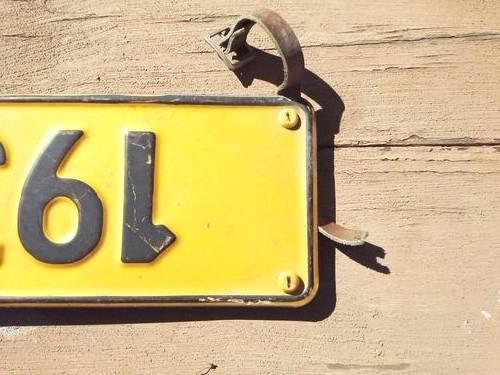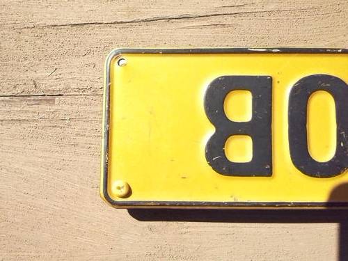 Vintage BFN Numberplate. Black lettering on Yellow background.