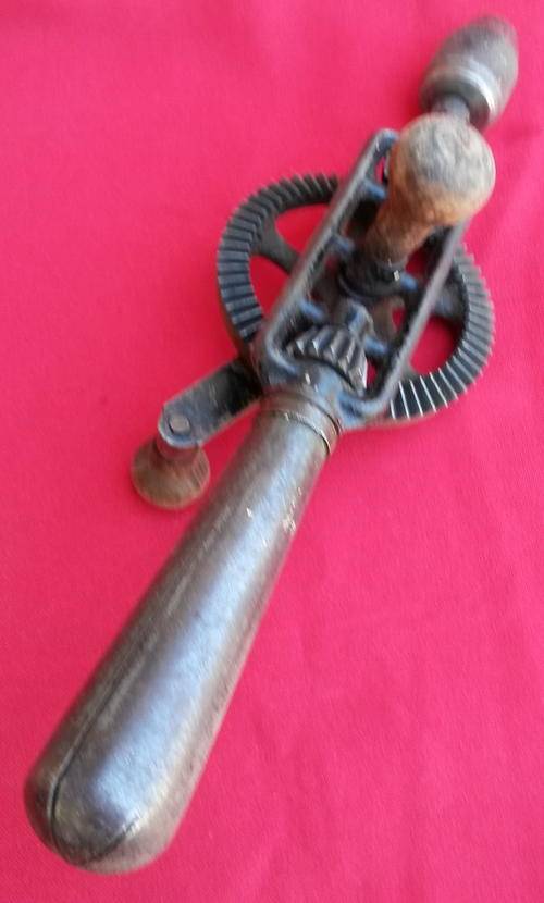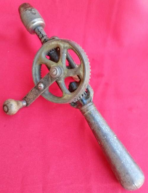 Description: Very old (no name) "eggbeater" hand drill. Handle is made of steel, not wood. Condition: Good used condition. Shows age and usage related wear and tear, but all parts seem to be intact, and still in 100% working condition. Item sold as found, it does need a good clean and TLC. Approximate size: 31cm long. Other: Colour of real item could differ slightly from that reflected on the picture. Please regard pictures as part of the description of the item.