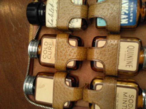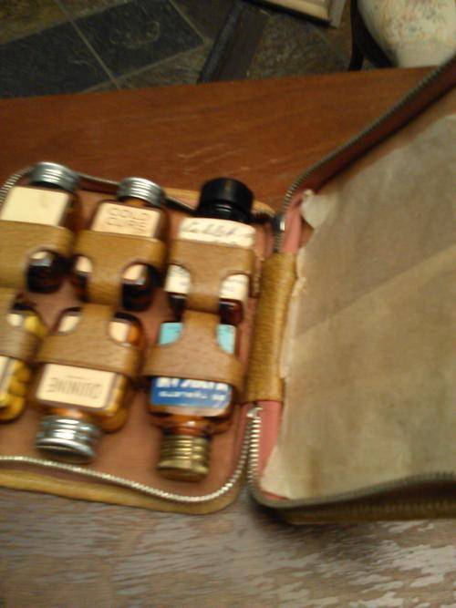 Very Old immaculate Leather Pouch with very old bottles of pills