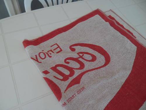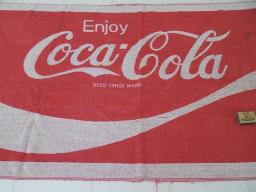 very old large used original coca cola towel - Glodina make