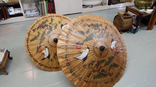 Very old pair of Japanese umbrellas both with small tear - as per photo