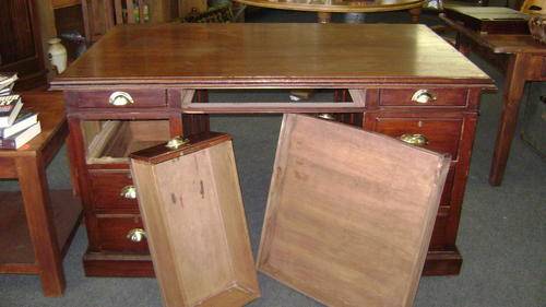 For sale is this lovely desk in solid wood with two seperate pedestals and loose desk top,