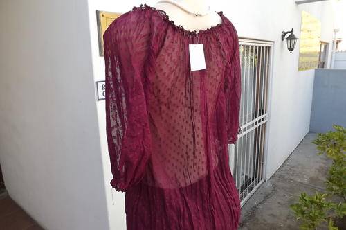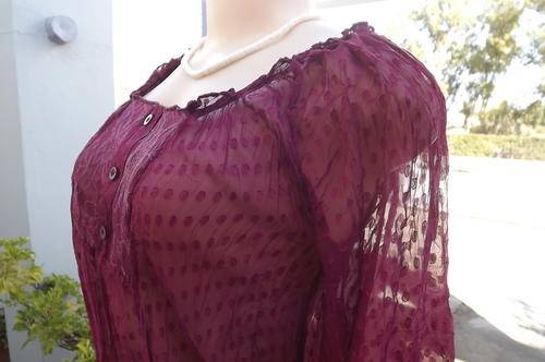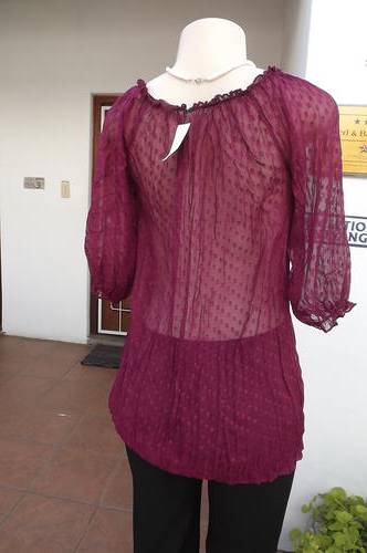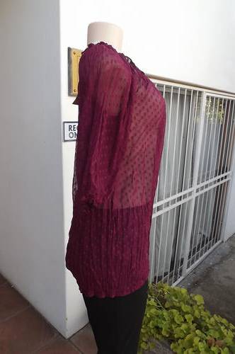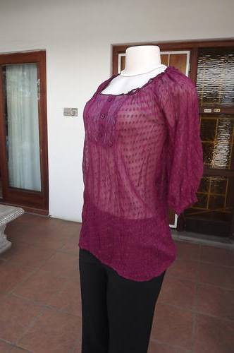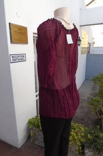 Very pretty and feminine maroon colour loose creased sheer top.Size 34/10.Elasticated neckline