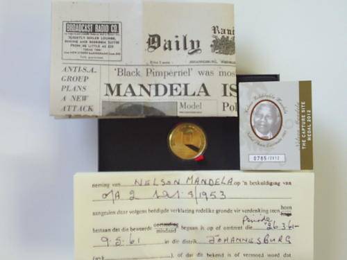 Nelson Mandela. Included is copies of the letter of arrest and the newspaper article.