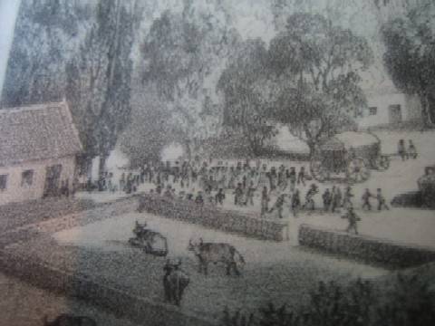 The detail is magnificent, including a crowd of schoolchildren playing outside a school, which is still there today, the old church, which is also still there, and a group of German missionaries working in a field on a hill outside the mission.