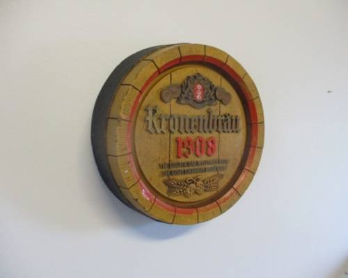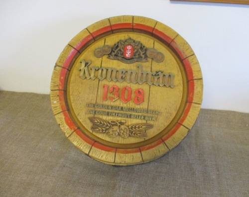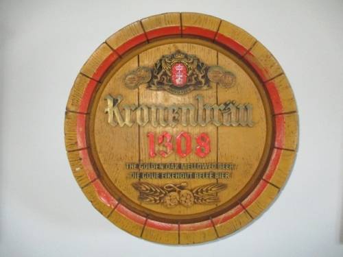 This is very rare and seldom available !!!! Vintage Kronenbrau 1308 beer barrel sign - The Golden Oak Mellowed Beer/Die Goue Eikehout Belee Bier 1970's Made of high quality compressed polystyrene with an antique wooden finish In good clean condition Stunning looking show piece