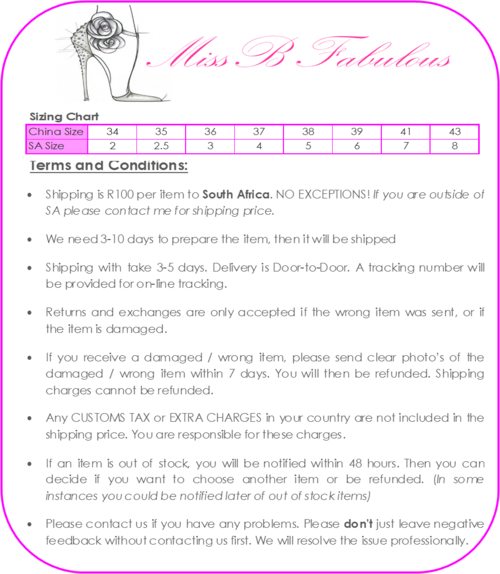R35.00 Standard shipping using one of our trusted couriers applies to most areas in South Africa. Some areas may attract a R30.00 surcharge. This will be calculated at checkout if applicable.