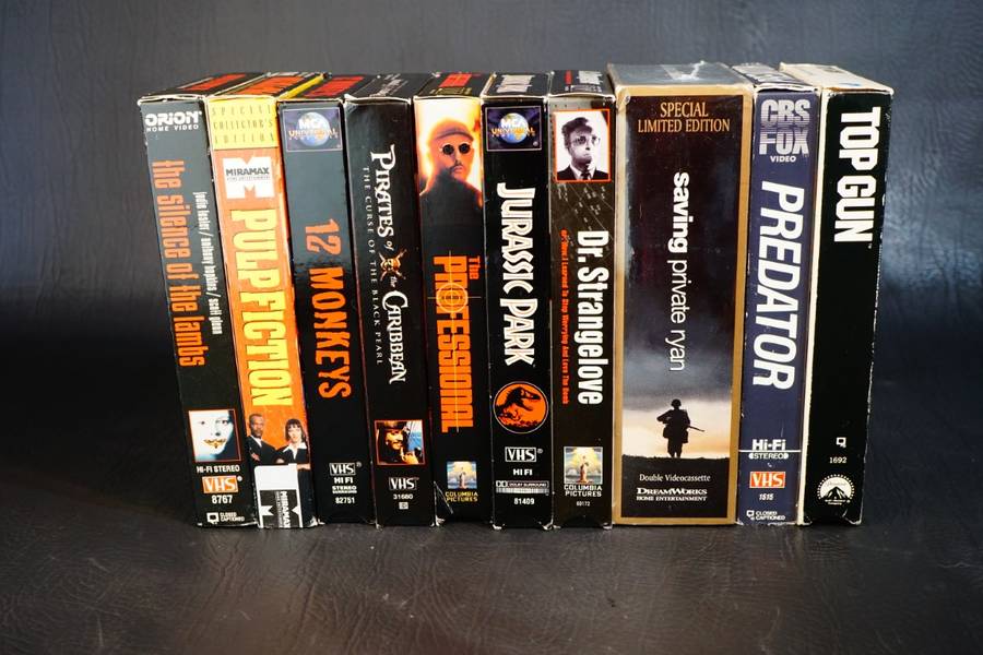 VHS Tape Collection 10x Iconic and Cult Classic Movies in Display Cases