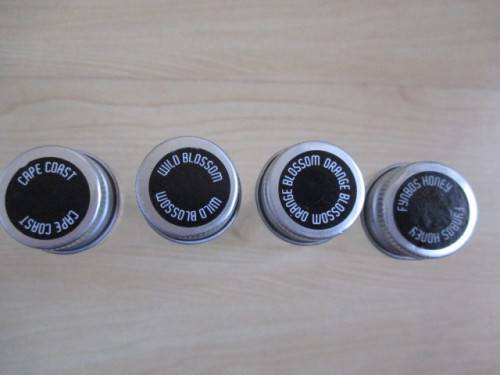 Vial glass bottles. There are 4 available at R20 each. size: height 16cm. width 3cm.