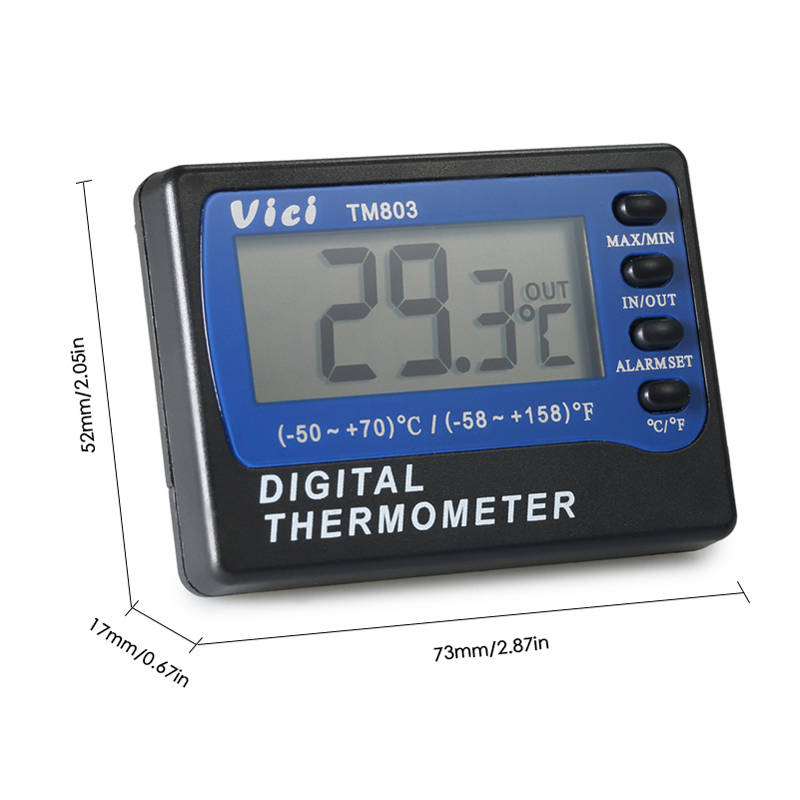 This mini digital thermometer is used for measuring the indoor temperature of refrigerator and out temperature by using the waterproof outer sensor. Small size and light weight, very easy to use. With a hanging hole to be hung on the wall, magnetic attachment to attach on the metal surface and a bracket to be placed on the table.
