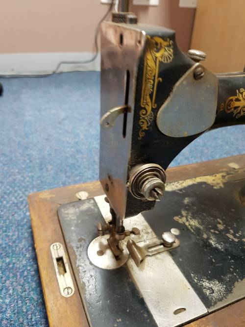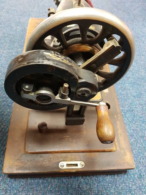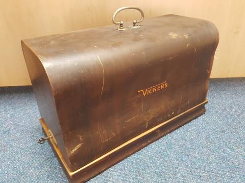 Antique Vickers sewing machine - still in original wooden casing with key.