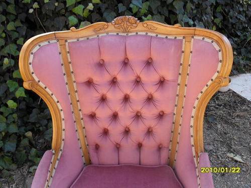VICTORIAN STYLE ARM CHAIRS  IN PRETTY PINK.  UPHOLSTERY IS IN EXCELLENT CONDITION.