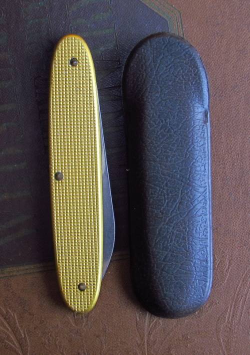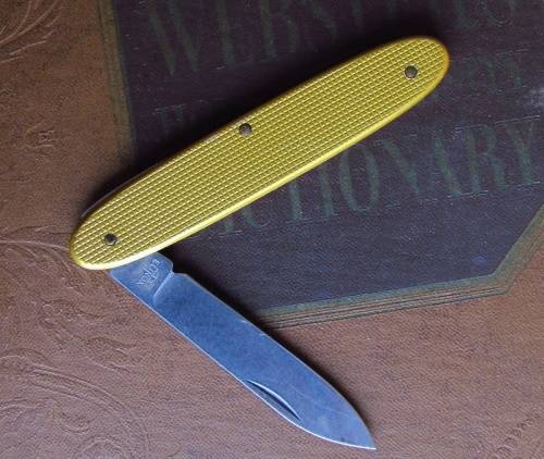A 84mm Victorinox Sentry marked Elinox dating from the 60's with gold alox scales still in excellent condition.