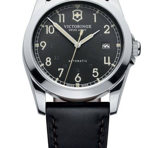 A luxurious gentleman is easily spotted by his fashion sense and adding this treasure of a timepiece to your collection will ensure that your exceeds the criterion The Infantry Victorinox Swiss Army is undoubtedly the perfect illustration of a classy lads watch for many different reasons This is evident from the very start when one takes a look at the dapper black band thats made of a high quality leather material that is supremely durable It features a 11MM stainless steel case that is both indestructible and exquisitely refined at once Its smooth black dial adds to the dashing demeanor of this time-keeper and its silver contributes to the sophisticated flair of this whole piece This ones a show-stopper one that will effortlessly set you apart from the rest of the crowd in an instant However this luxury watch isnt only considered so because of its looks It offers killer functional features to go beyond the norm as well For example not only is it made with quality material but it relies on a swiss-automatic movement ensuring superior precision and accuracy that will keep you on schedule no matter how busy life gets This is a timepiece that can keep up Its also water-resistant to 100 meters 330 feet 10 atm so a splash wont threaten its functionality In addition it features sturdy a antireflective sapphire crystal that promises to protect the dial of the watch without compromise So not only is this an accessory with a dapper countenance but its unmatched in performance as well If youre looking for a timepiece that can keep up with your upscale outings and deluxe its obvious that theres no need to look further This Infantry Victorinox Swiss Army watch is what youve been looking for
