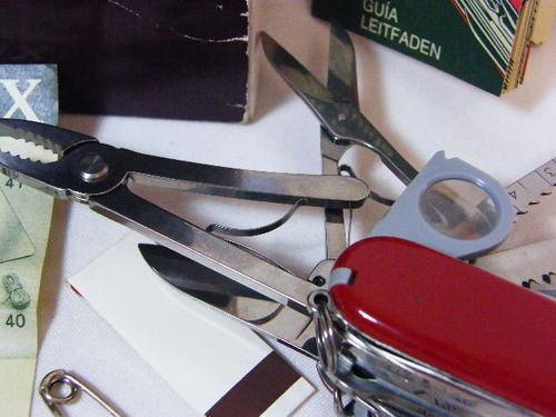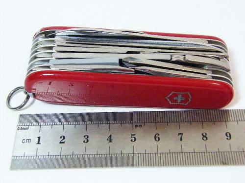 Victorinox Swiss Champ survival knife with multiple functions - unused in box & leather pouch